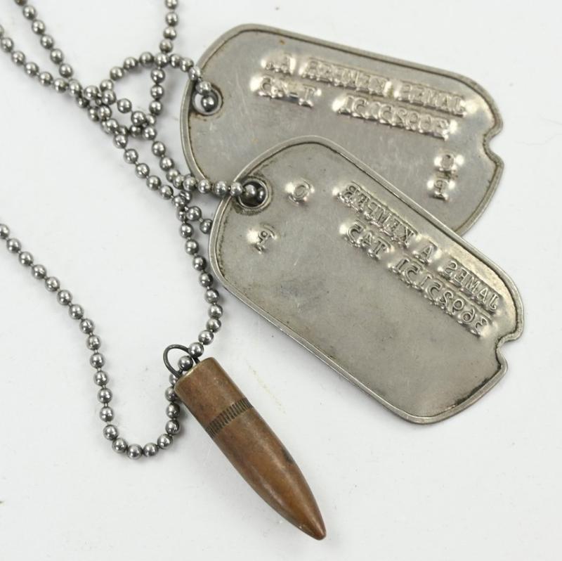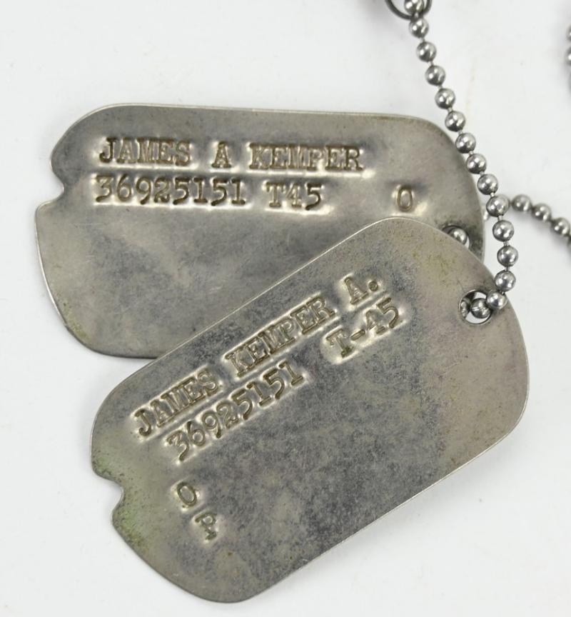US WW2 Dog-Tag set with Chain and Bullit 'James A Kemper'