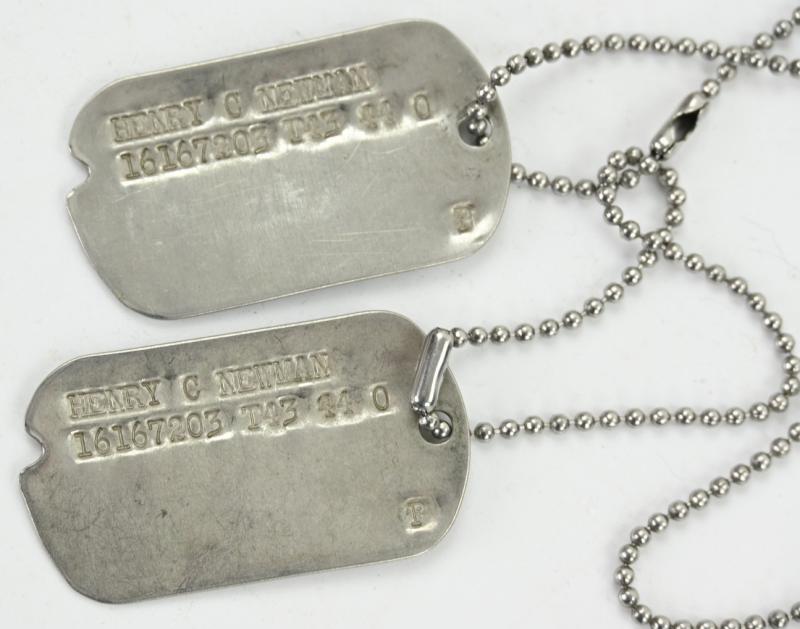 In a very good condition a US WW2 Dog-tag Set with Chain on the name of 'Henry C. Newman'. Henry was a member of the 18th mobile R&R Squadron (H) in Hitcham Suffolk.