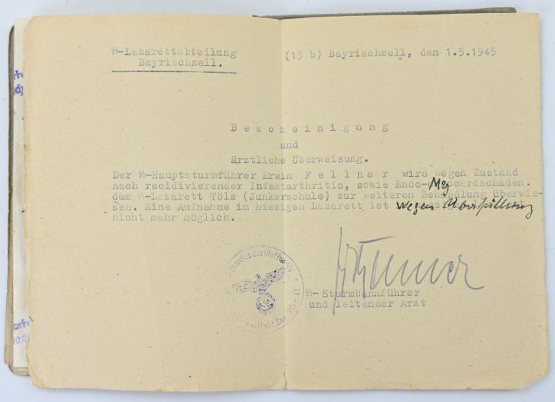 German Waffen-SS Soldbuch SS-hauptsturmführer Erwin Fellner