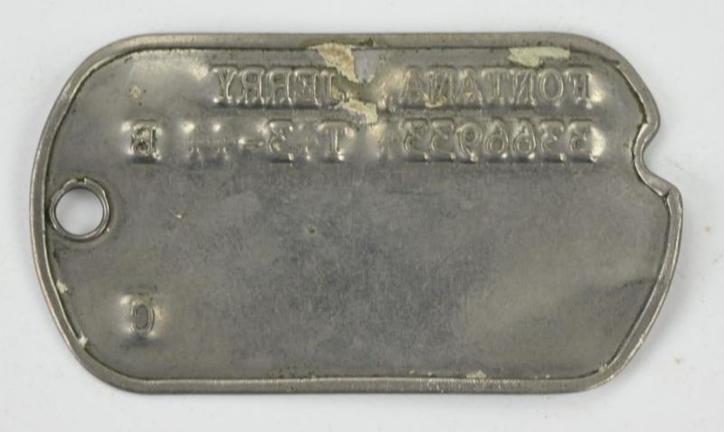 In a very nice condition a US WW2 Single Dog-tag on the name of Jerry Fontana. Jerry was a member of the USAAF Squadron A 502d AAF BU (SW) and stationed in Hunter Field Georgia.