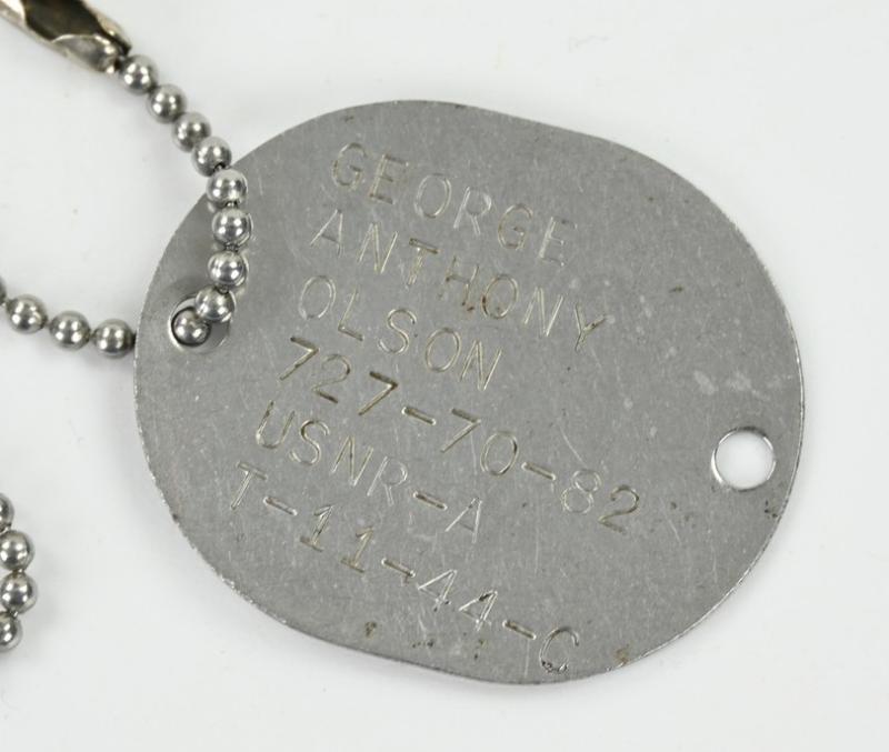 In a very nice condition a USMC WW2 Dog-Tag on the name of 'George Anthony Olson'. The dog-tag comes with chain.