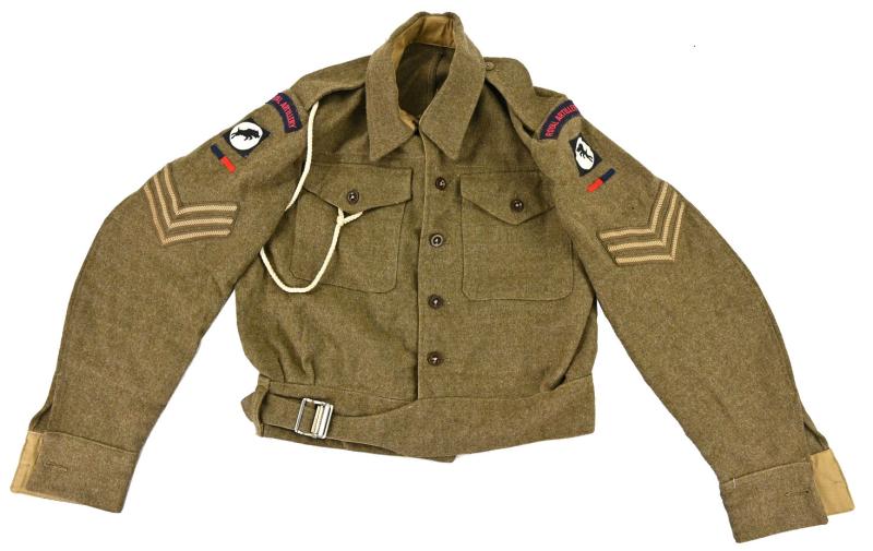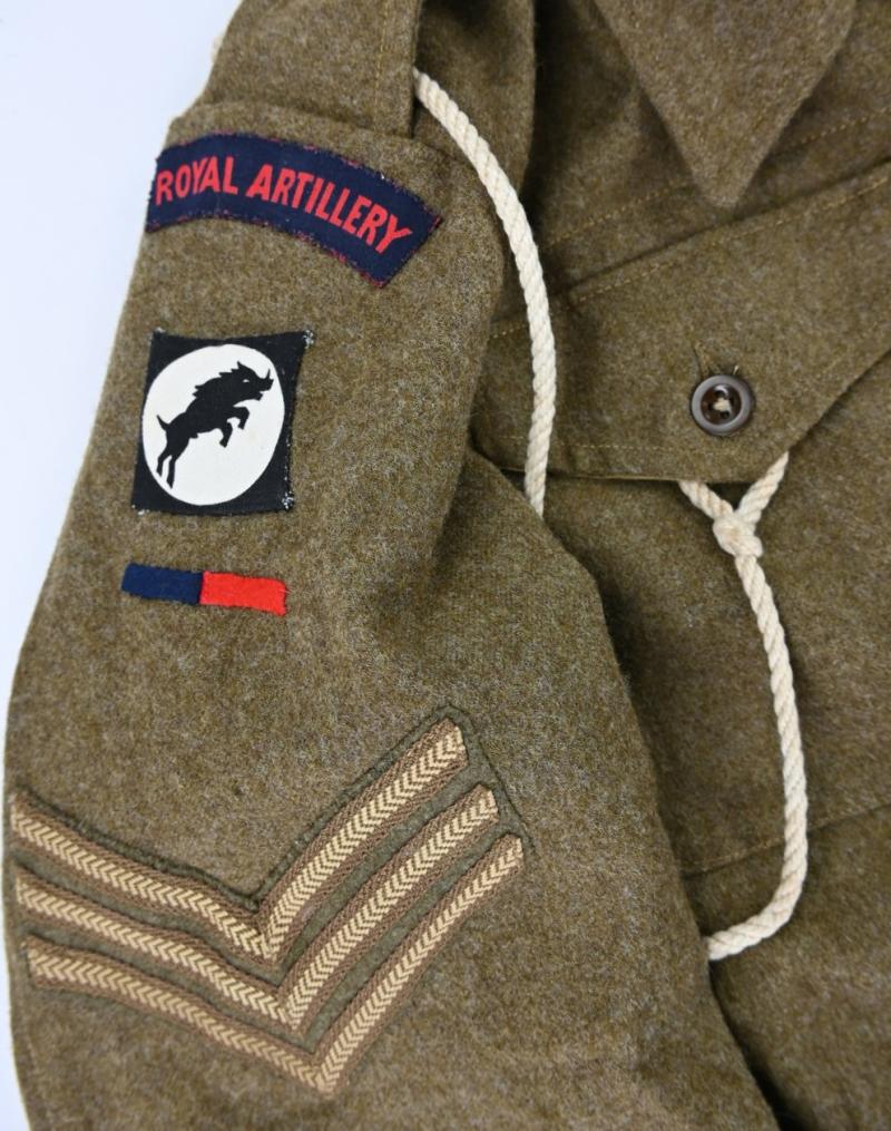The battledress comes with the insignia of a 30th Corps Sergeant of the Royal Artillery.