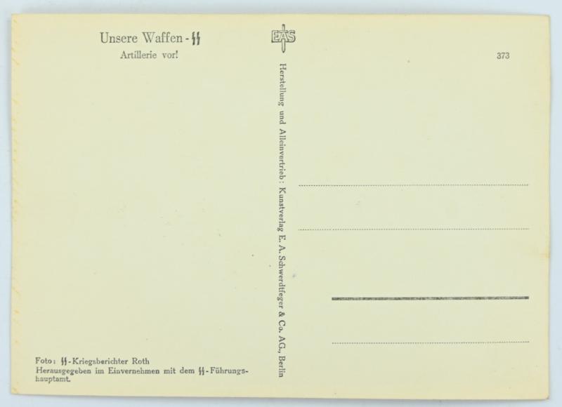 The postcard comes from the serie 'Unsere Waffen-SS' and is named Artillerie Vor!