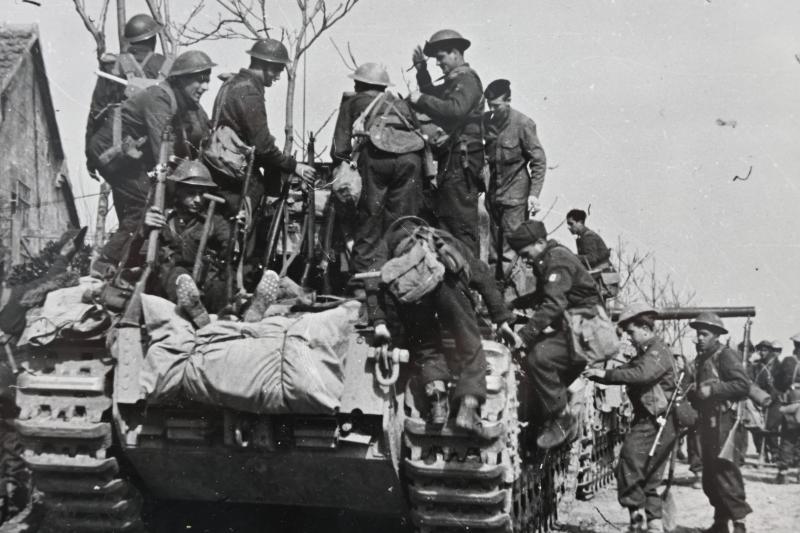 In a very good condition a US WW2 Press Photo of 'British Troops on the Front'. The picture comes in a size of 12x17cm. A very nice picture with a british tank!