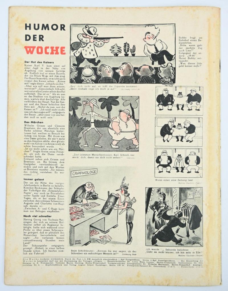 In a very nice condition a German Third Reich Magazine 'Die Woche'. The magazine is dated November 1943 and comes with a stunning colour printed cover.