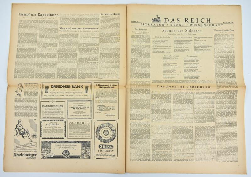 In a nice used condition a German Newspaper “Das Reich” dated Juen 1944 The paper comes with a very nice header.