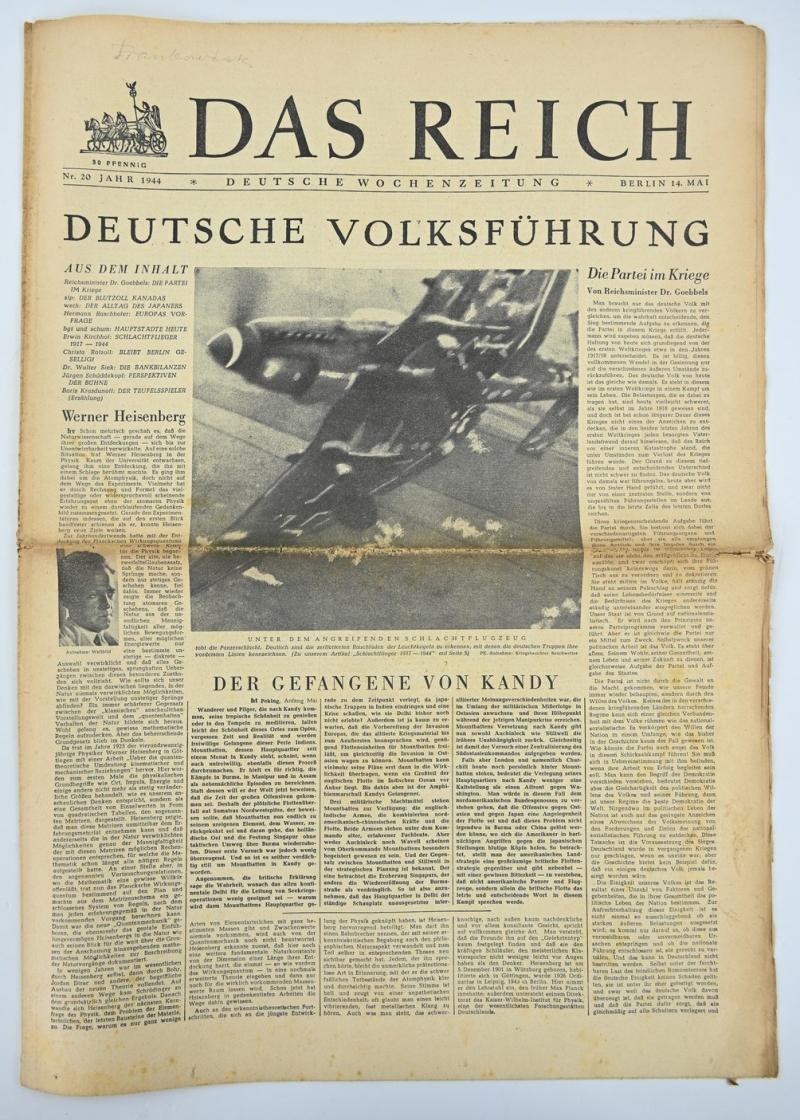In a nice used condition a German Newspaper “Das Reich” dated May 1944. The paper comes with a very nice header.
