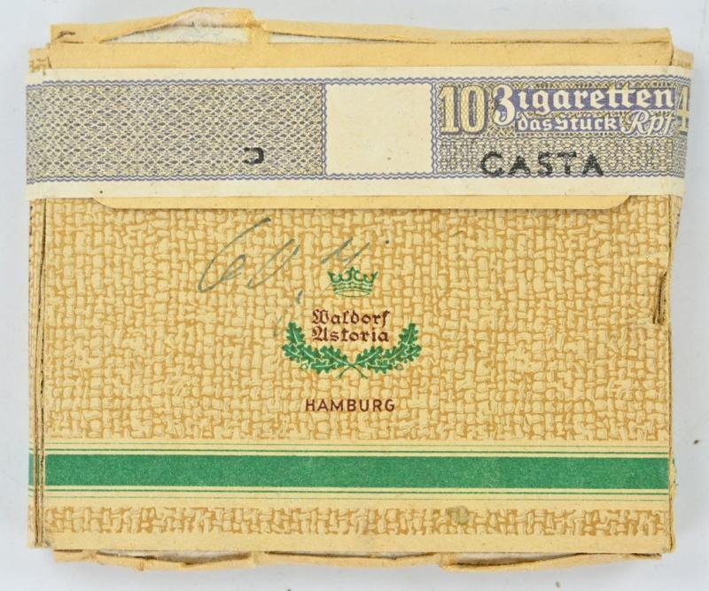 In a bit crushed condition a German Third Reich Era Cigaret Package of the brand 'Echt Orient Cigarets' The package comes with the original content still inside. A very hard to find package!