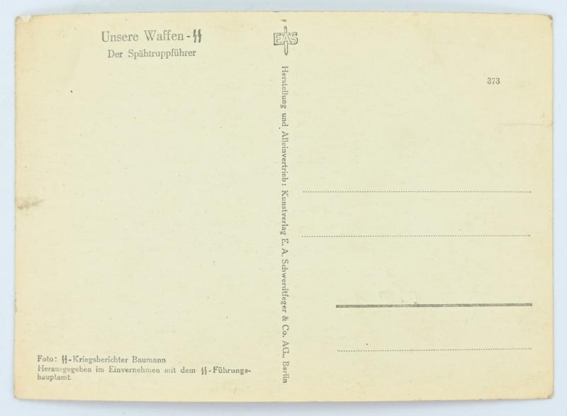 In a very good condition a German Waffen-SS Kriegsberichter Postcard. The postcard is from the serie 'Unsere Waffen-SS' . A very nice SS picture on the postcard!