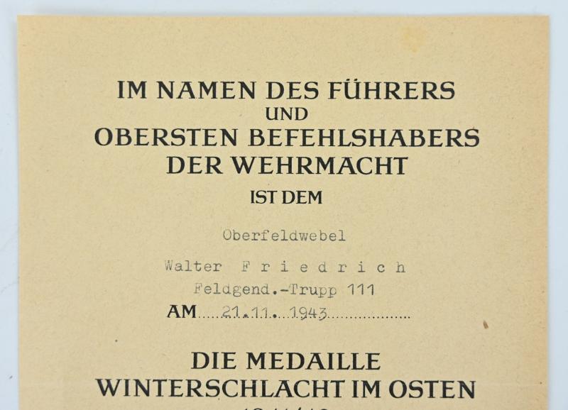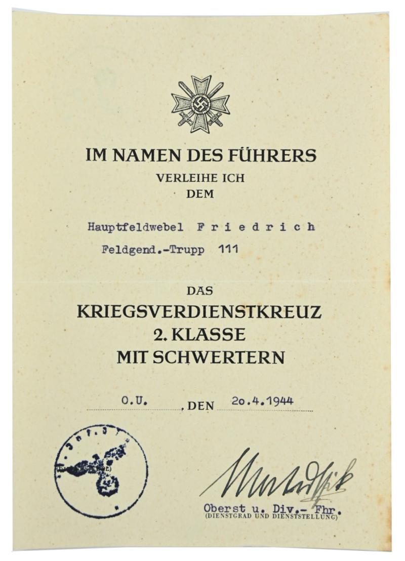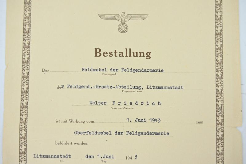 In a very good condition a German Wehrmacht Feldgendarmerie grouping on the name of Hauptfeldwebel Friedrich, member of the Feldgendarmerie-Trupp 111.