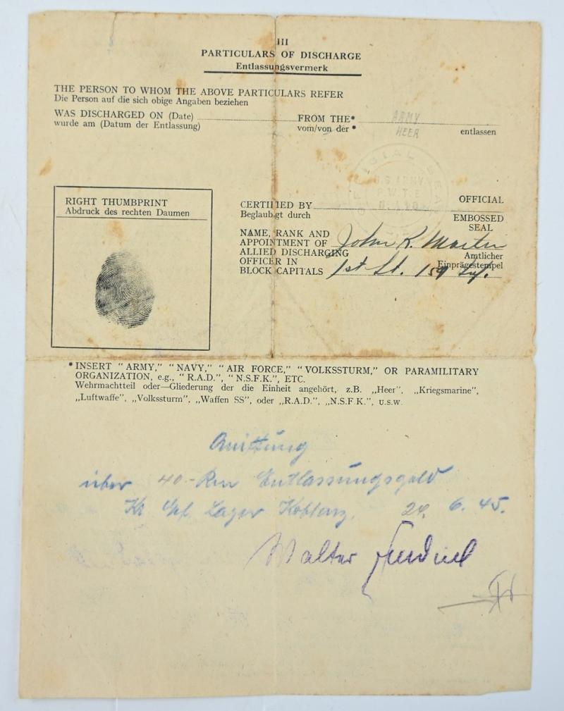 The grouping contains his award documents, picture with his wife and certificate of discarge as a prisoner of war.