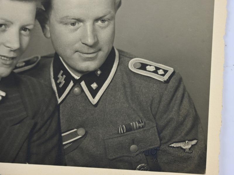 In a very good condition a German Portrait Picture of a Waffen-SS-Truppführer from the Germania Regiment with his wife. The picture comes in a postcard size. A very stunning picture!