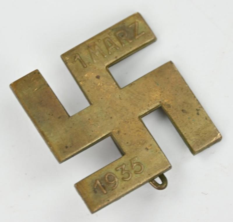 In a very good condition a German 1 March 1935 Saar badge. The commemorative badge of the Saar area annexed from France to the 3rd Reich. Nice quality brass badge made by Deschler in Munich.