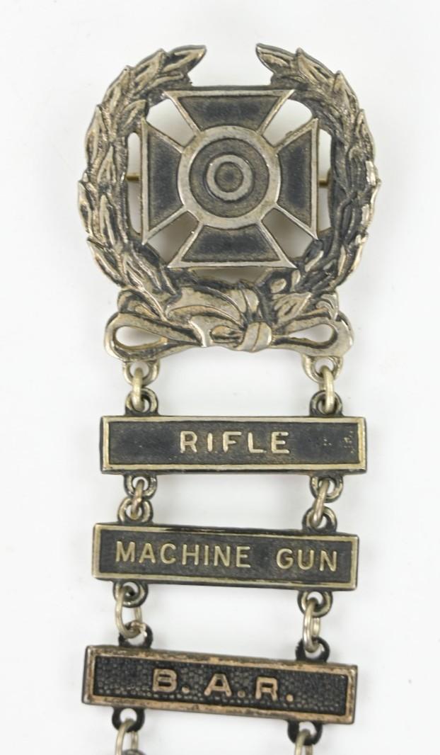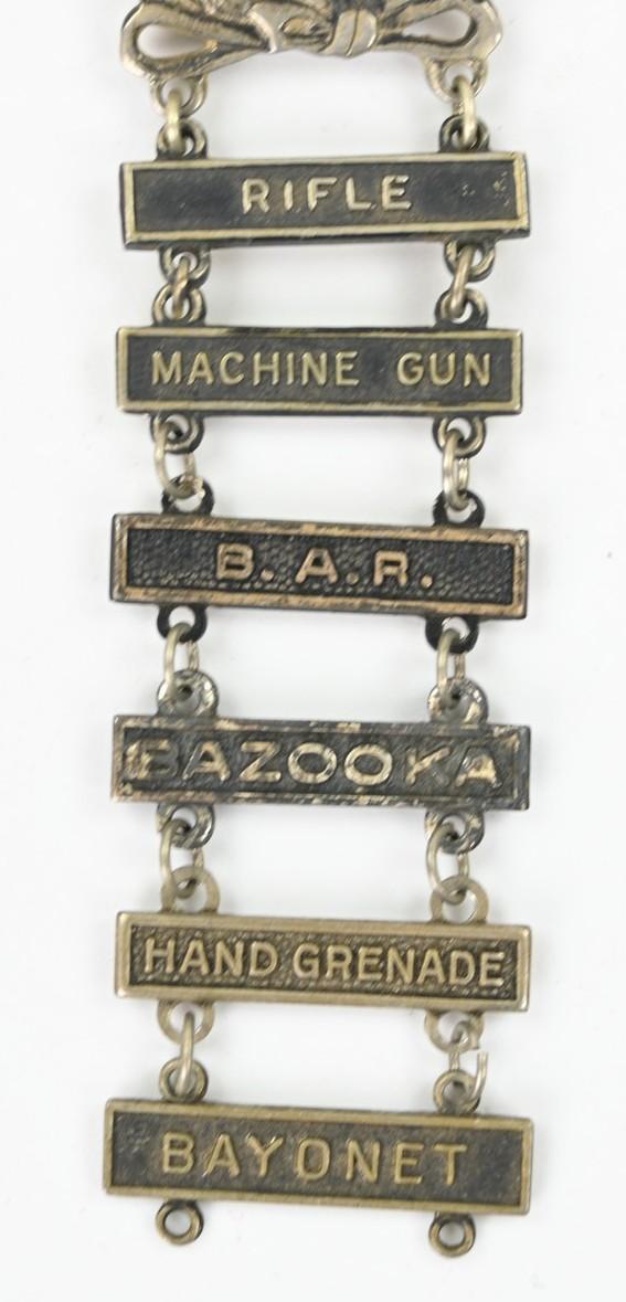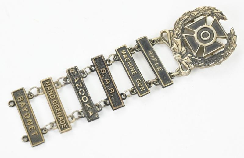 In a very nice condition a stunning long US WW2 Expert Marksman Badge with attached qualification bars.