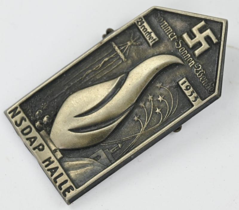 In a very good condition a German NSDAP Halle Summer Solstice Badge 1933. The badge comes with a functional needle and catch.
