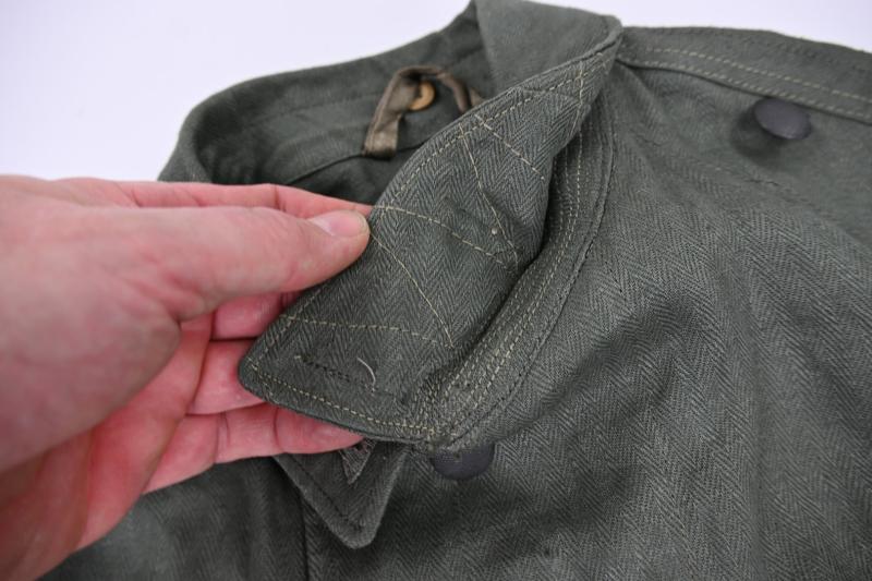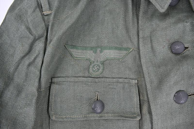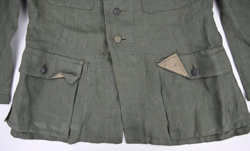 In a stunning mint condition a German Wehrmacht (Heer) M43 HBT (Drillich) Combat Tunic.