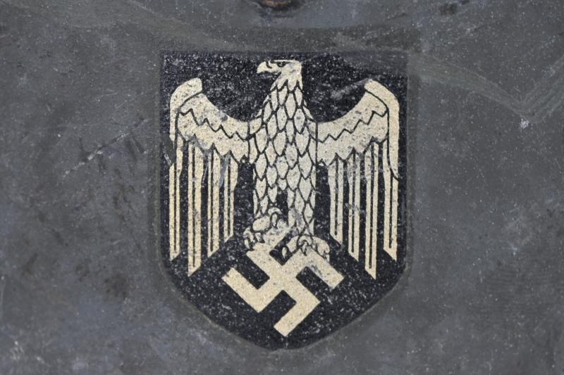 The shell has the original paint for 98% visible and the Wehrmacht eagle for 98% visible.