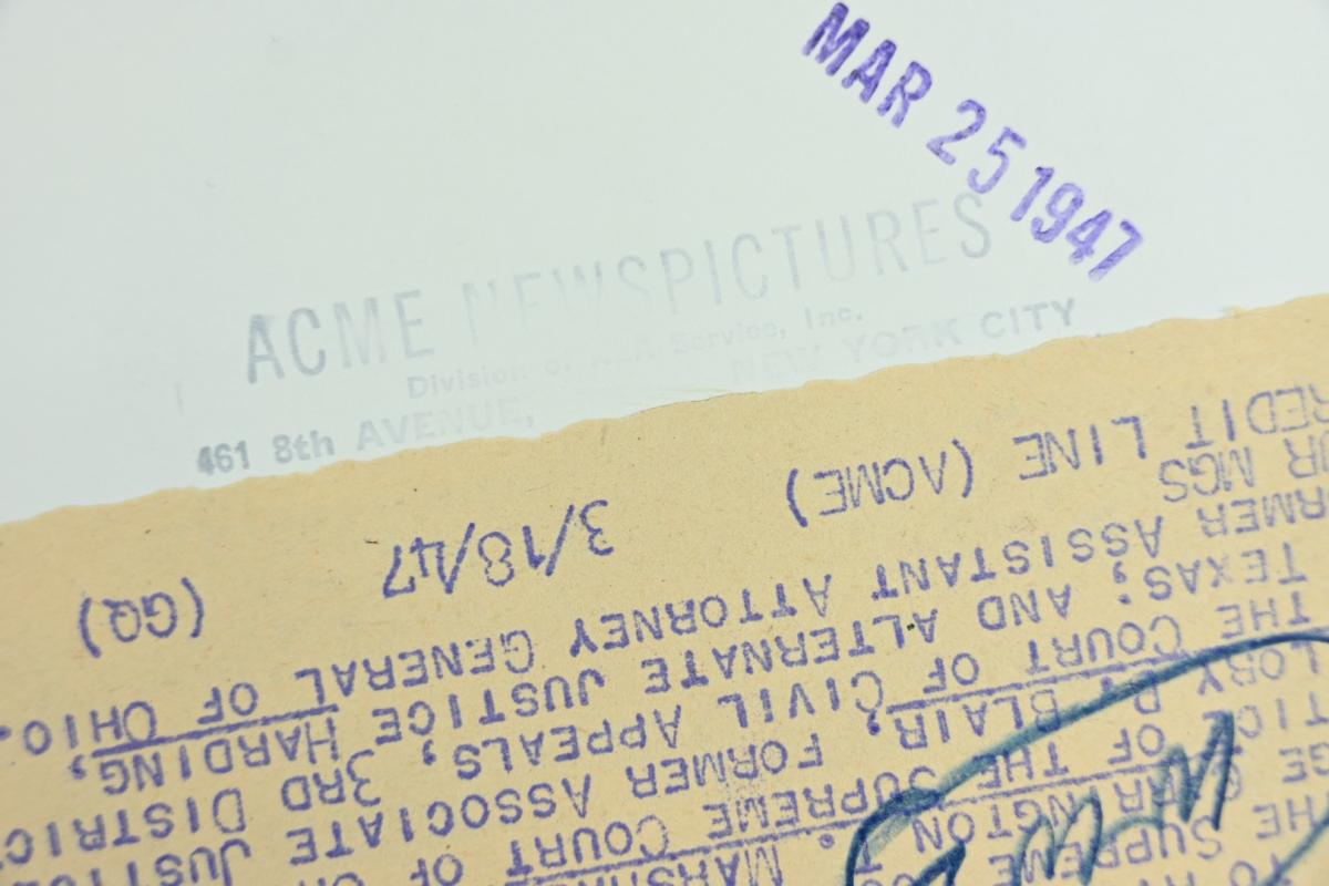 On the reverse side of the picture is still the original press paper attached.
