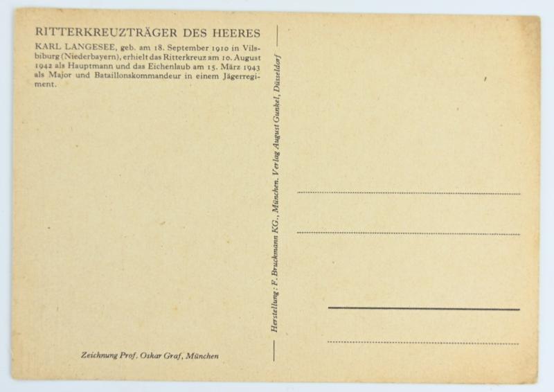 In a nice condition a German 'Willrich' period picture-postcard from the famous 'Ritterkreuzträger'-series depicting the: Karl langesee, in overall very nice condition.