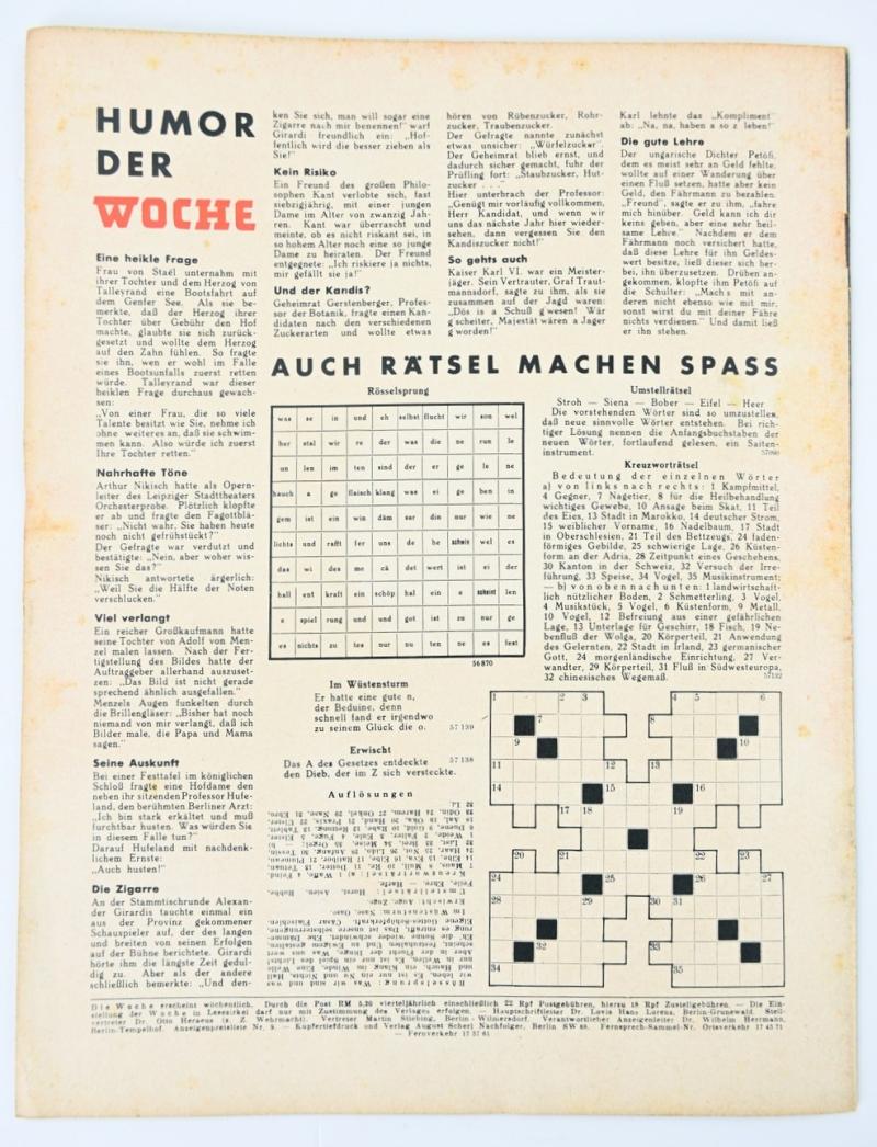 In a very nice condition a German Third Reich Magazine 'Die Woche'.December 1943 and comes with a stunning colour printed cover.
