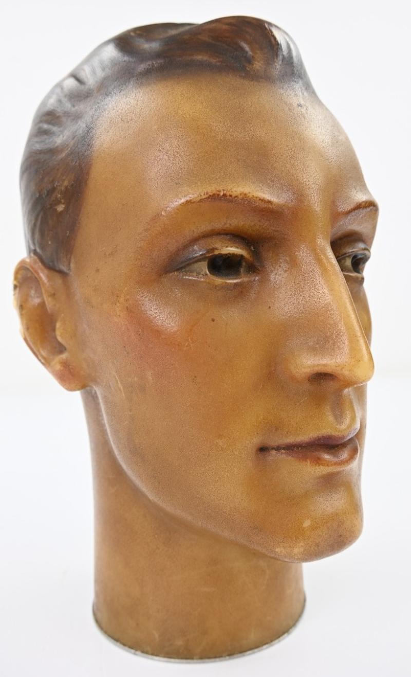 In a very nice used condition a stunning and hard to find male mannequin head made of Wax!