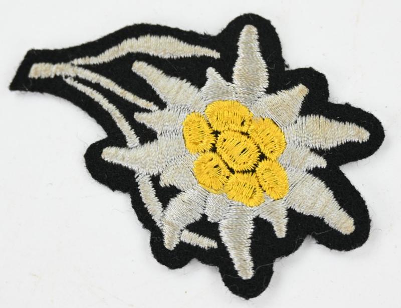 In a very good condition a German Waffen-SS Mountain troops (Gebirgsjäger) 'Einheitsfeldmutze' Cap badge. A very stunning cap badge in a never used condition.
