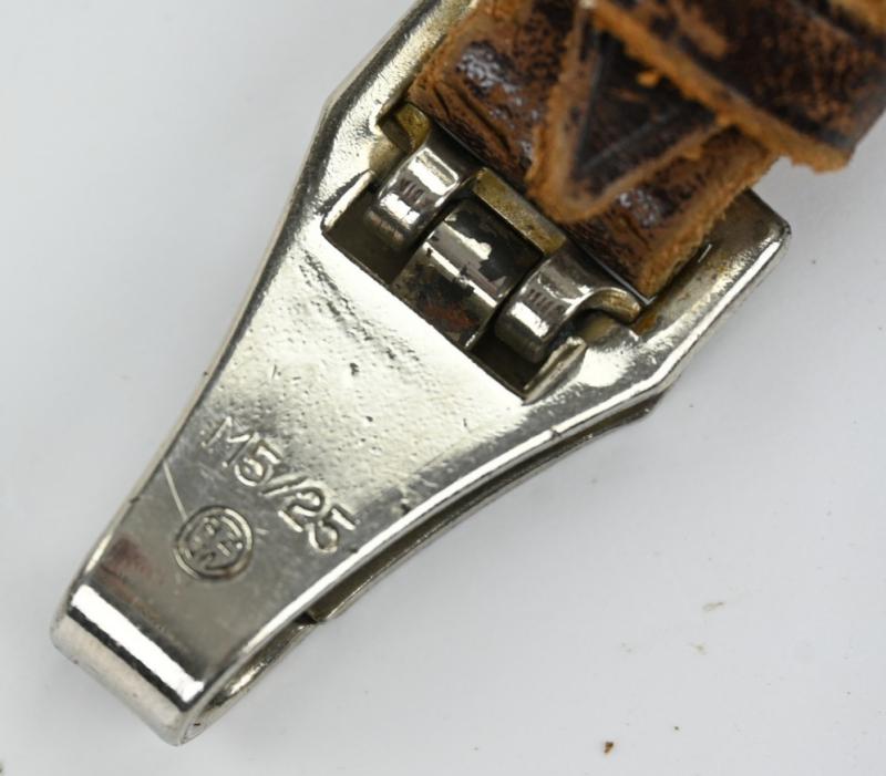 In a very good condition a German SA Sturmabteilung M33 dagger hanger. The hanger is complete with the snaphook nicely marked RZM M5/25. A very nice hanger to complete your dagger!