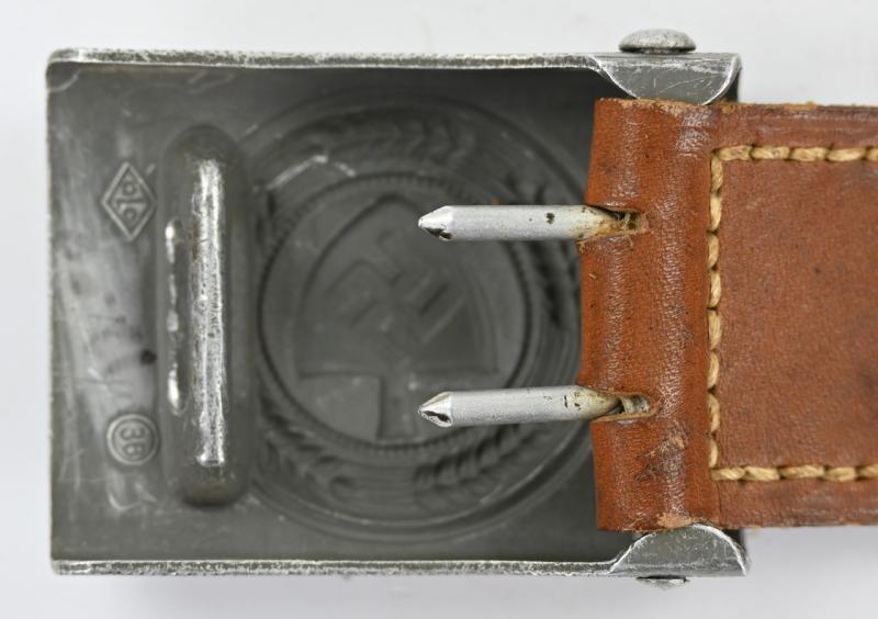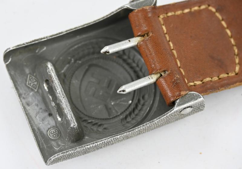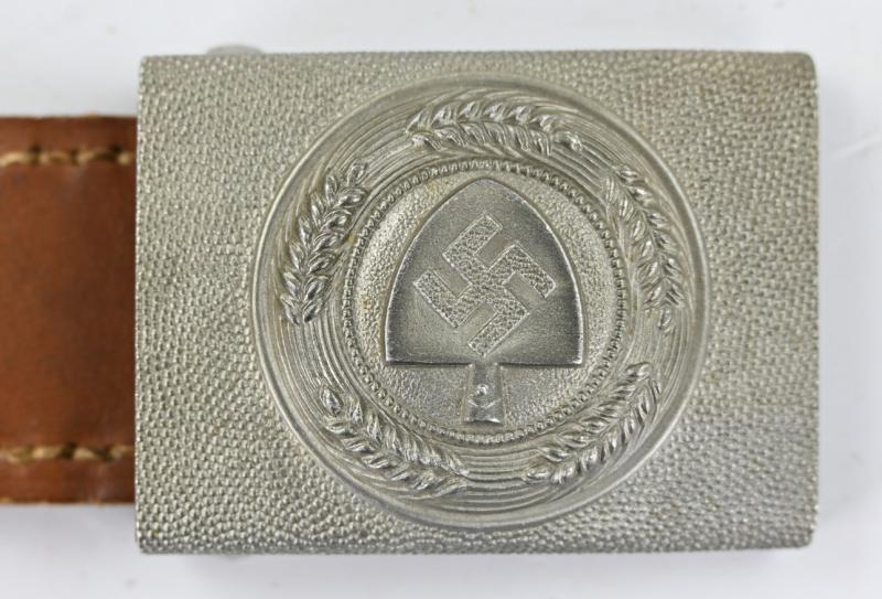 In a mint condition a German Reichsarbeitsdienst Beltbuckle with brown leather tab.
