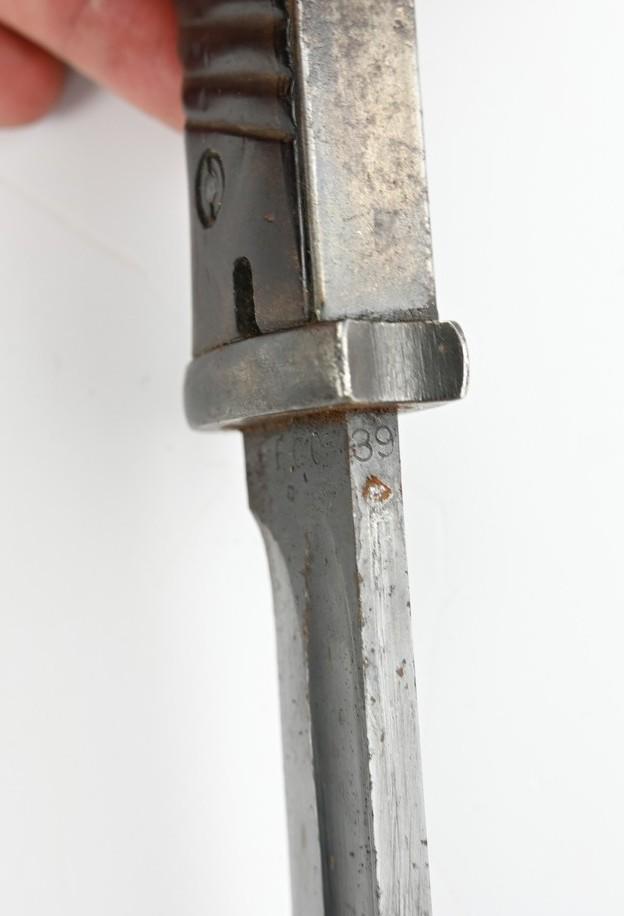 The bayonet and scabbard are nicely WaA stamped and in a light used condition and dated 1939.