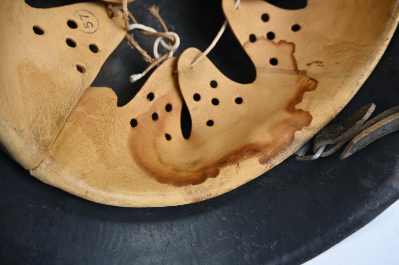 The helmet is complete with the original attached chinstrap.