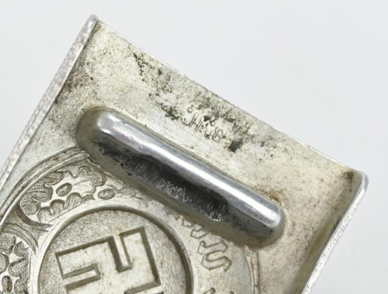 The beltbuckle is made of Aluminium and is maker marked on the leather tab by B. Haarman from Ludenscheid and dated 1937.