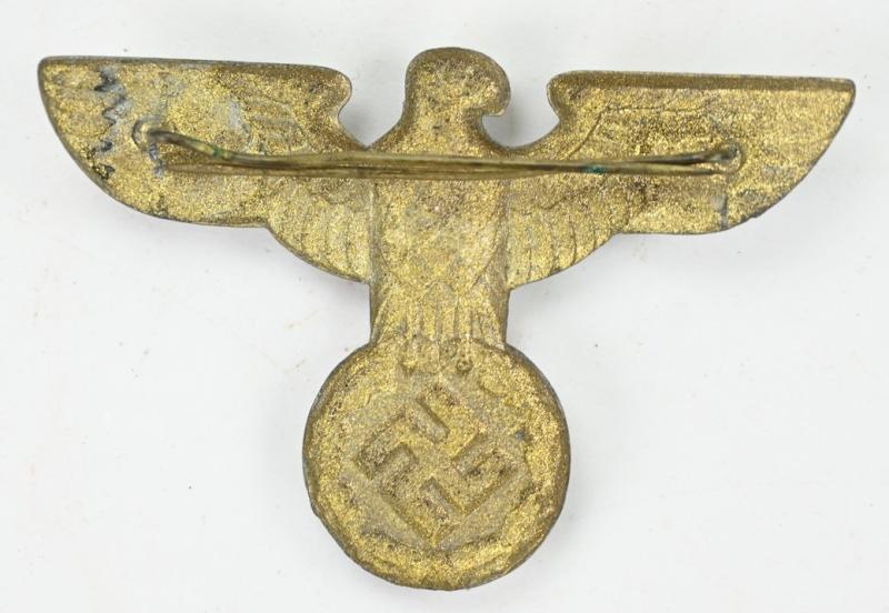 In a very nice condition a German NSDAP Political Visor Cap Eagle. The zinc made eagle comes with both prongs on the reverse side original attached.