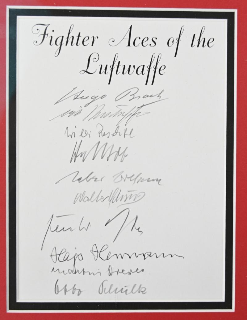 In a very good condition a small wall plaque of German Luftwaffe Flight Aces Signatures.