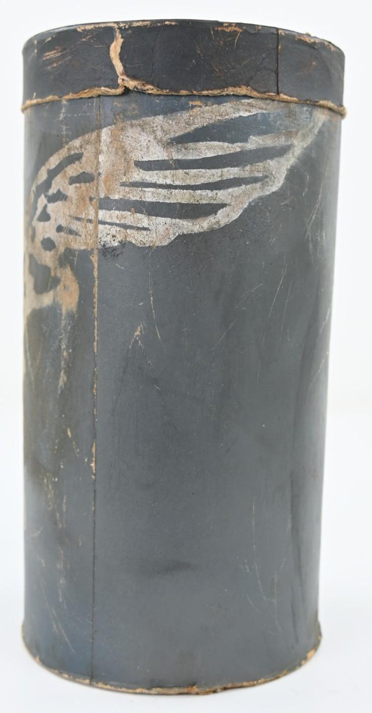 The container comes in a diamater of approx 15cm and is about 30cm high. Nicely made of carton and has on the side the Luftwaffe Eagle present.
