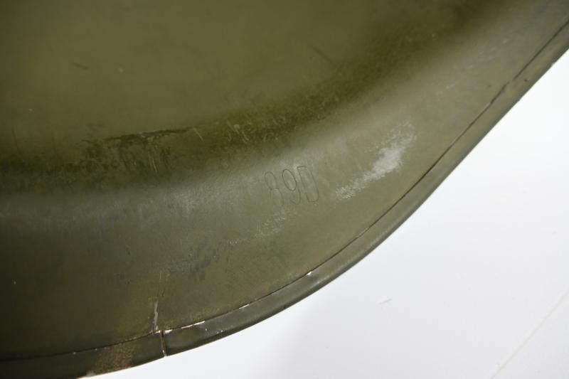In a stunning condition a US WW2 M1 Fixed Bale front seam type Combat helmet.