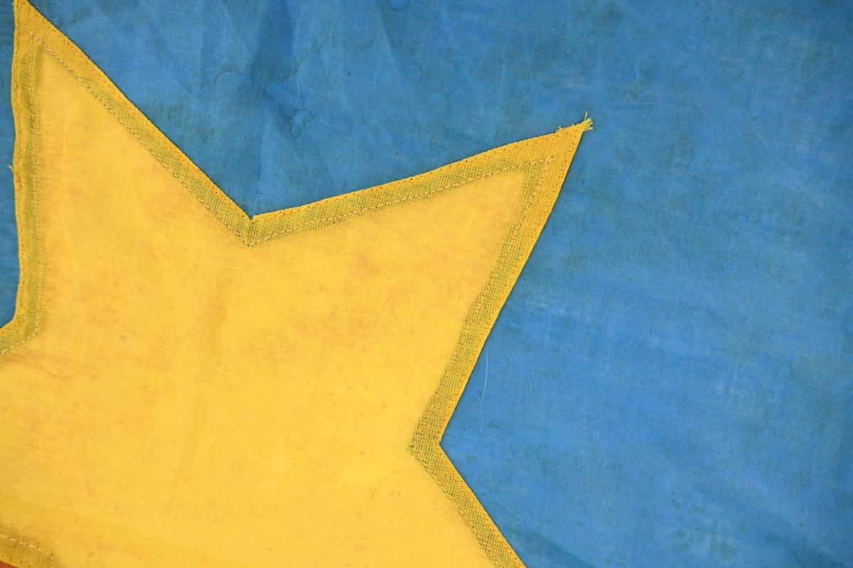 The red/blue linnen flag comes in a size of 54x76cm and has the communist yellow star original sewed in the middle of the flag.