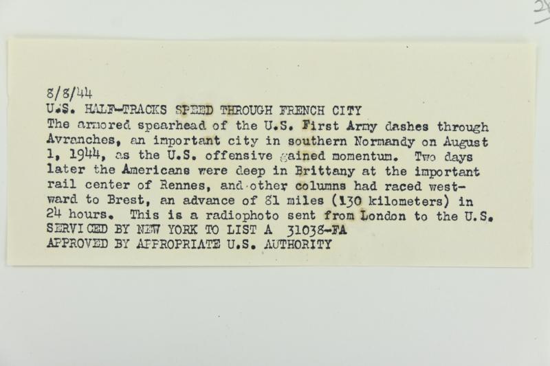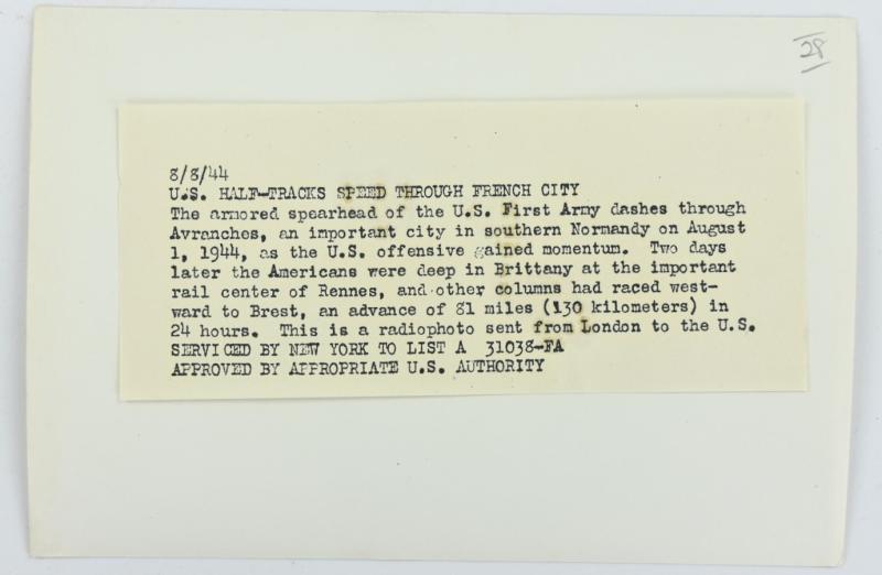 In a very nice condition a US WW2 Press Photo/ Radio Photo of 'Avranches Normandy' dated August 1944.