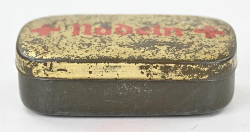 In a nice used condition a German Wehrmacht/ DRK Medical 'Nadeln' Box. The box comes in a size of approx 4x3x3cm and comes in the arly pattern. A very nice box display of medical items!