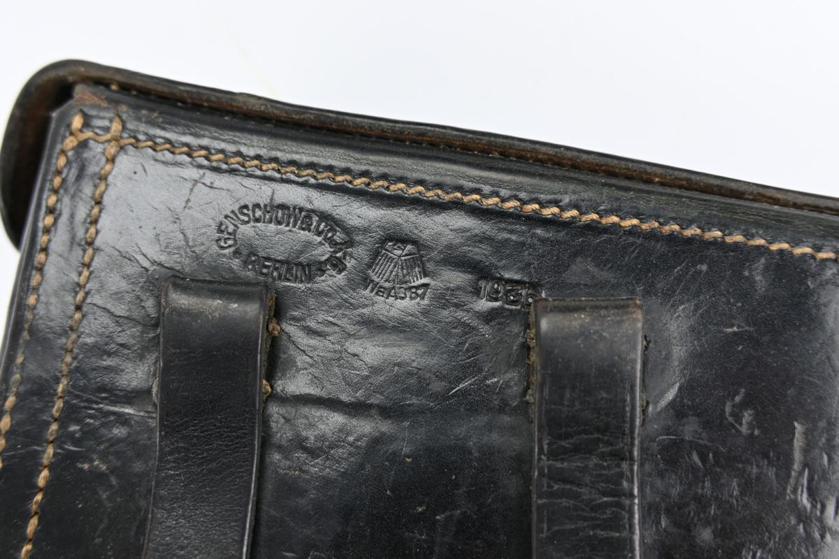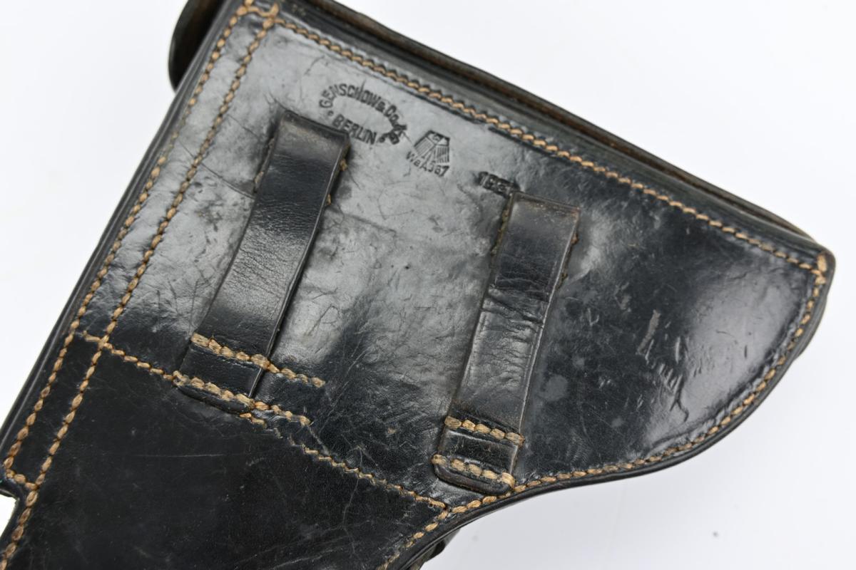 The black leather holster comes in a complete condition and is WaA stamped and maker marked on the reverse side and dated 1936.