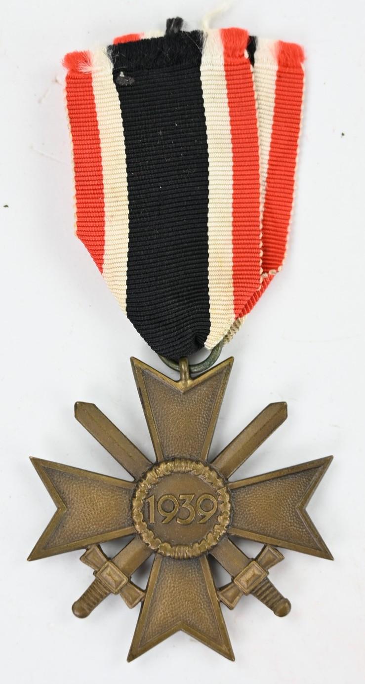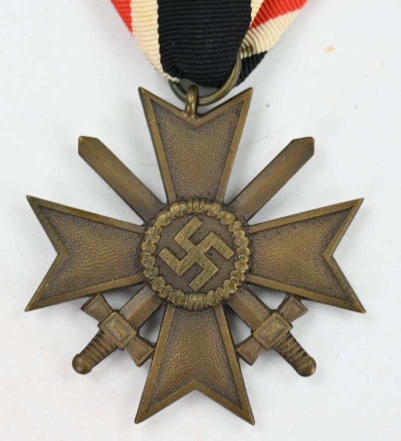 In a very good condition a German WW2 War Merit Cross 2nd Class with Swords. The cross comes without maker marking but with the original ribbon.