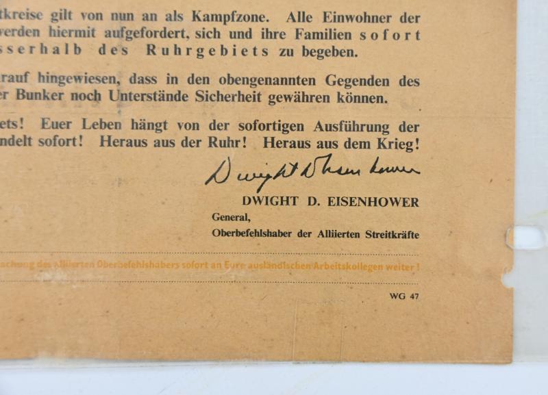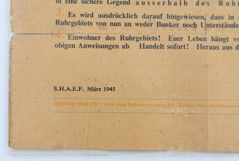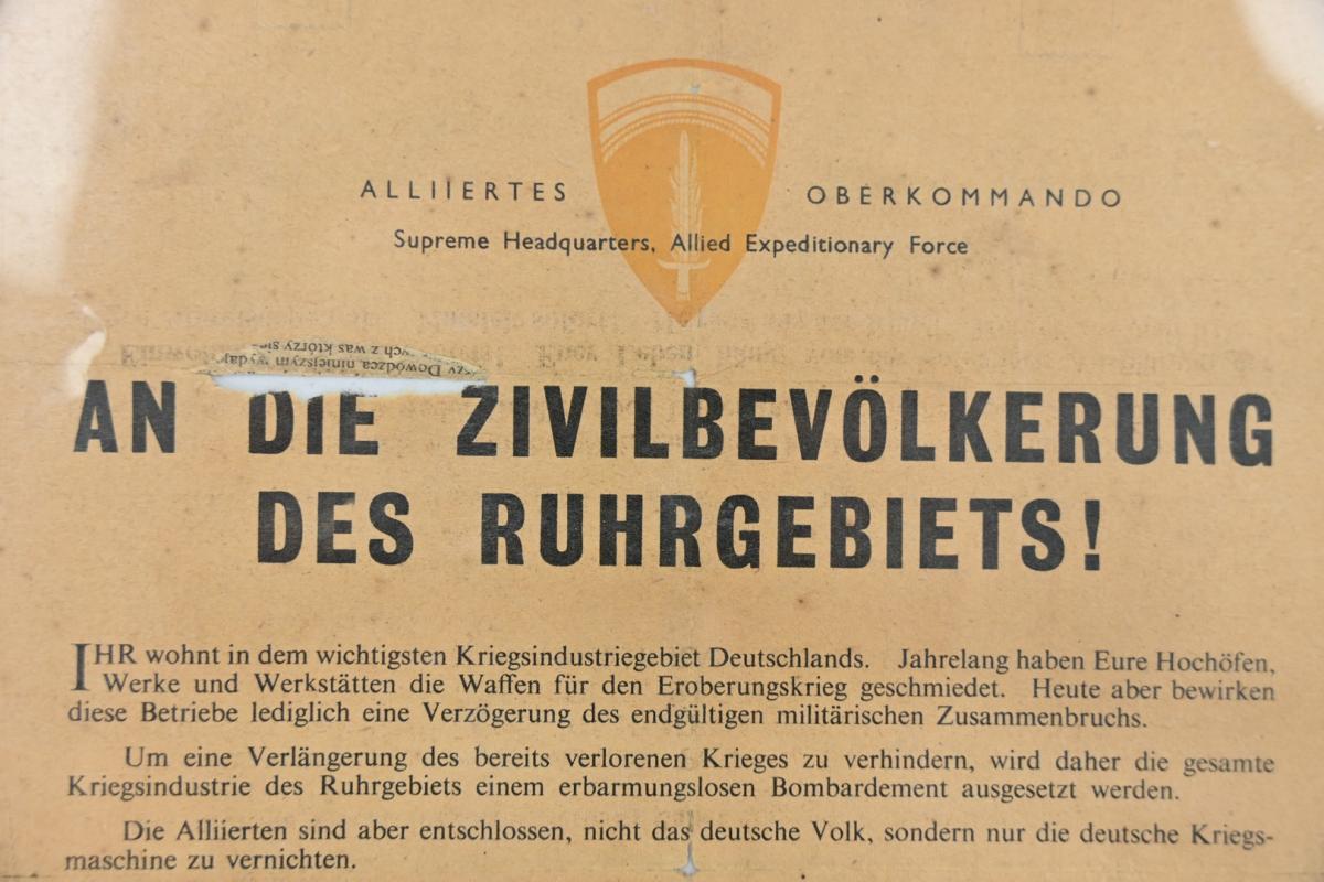 A very stunning leaflet that orders the citizen of the Ruhr area to leaf the zone.