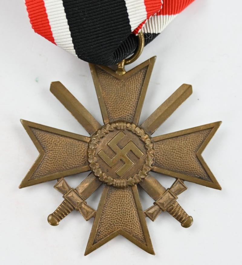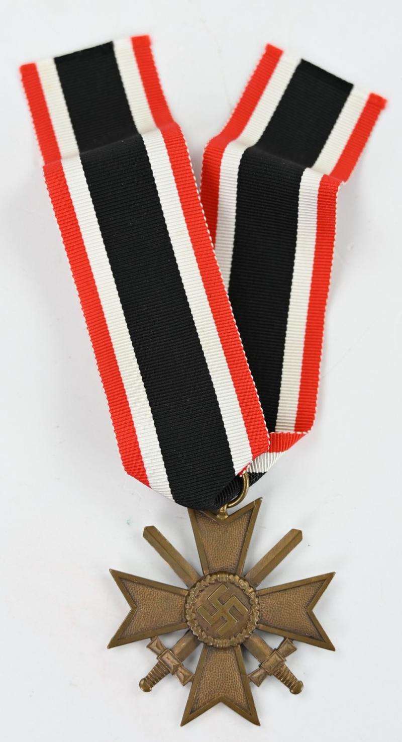 In a very nice condition a German WW2 War Merit Cross 2nd Class with Swords. The cross comes without maker marking but with the original ribbon.