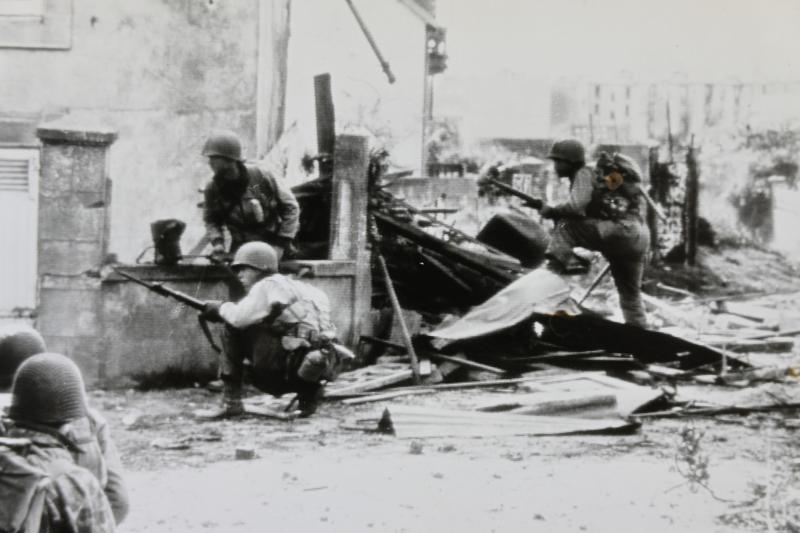 In a very good condition a US WW2 Radiophoto 'Yanks fighting in Brest'. The photo comes in a size of approx. 15x25cm and is dated September 1944.