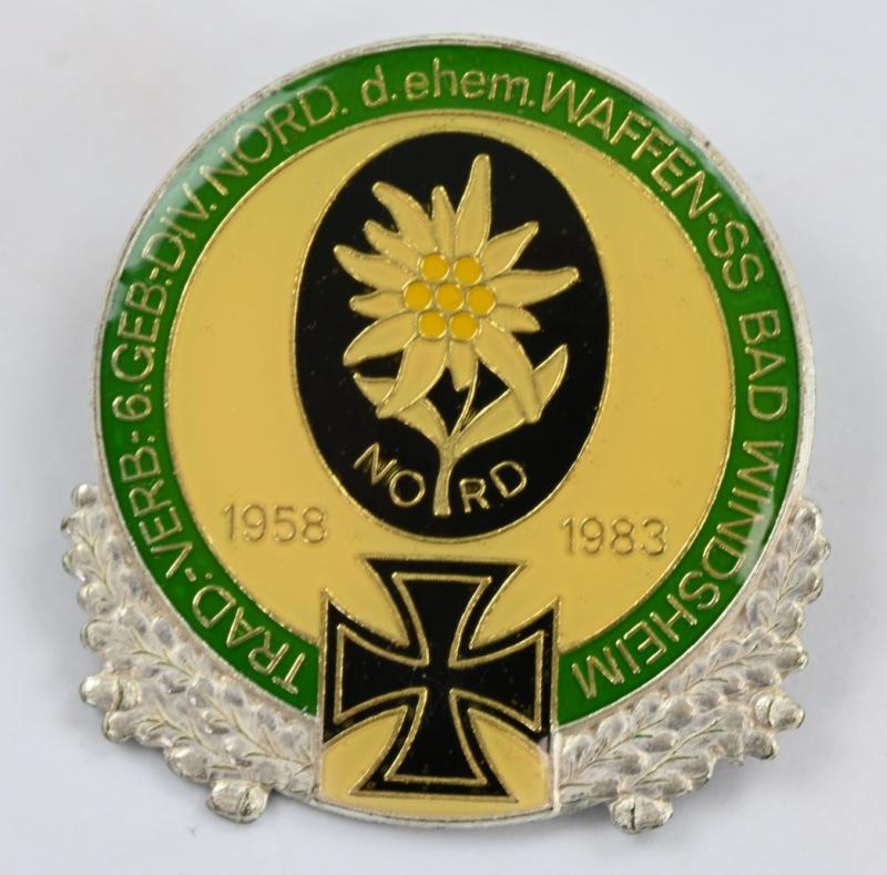 In a very nice condition a set of German HIAG (Hilfsgemeinschaft auf Gegenseitigkeit der Angehörigen der ehemaligen Waffen-SS) Badge Set '6th SS Mountain Division Nord'