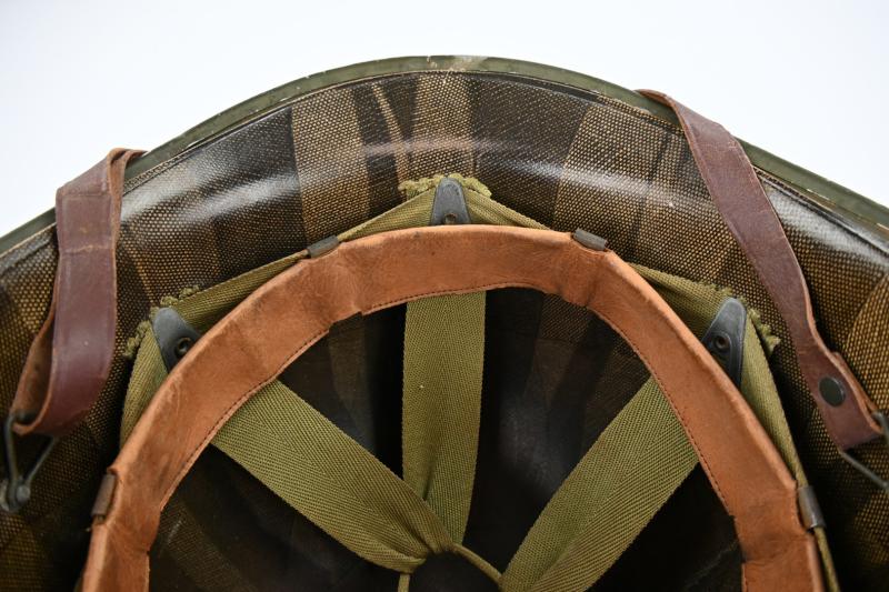 The helmet liner is a stunning high pressure liner made and marked by Westinghouse with the complete lining in a near mint condition justlike the paint on the outside.
