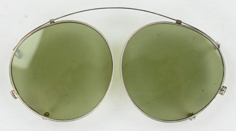 In a very good condition a US Army Air Force WW2 Clip-on Sunglasses. The sunglasses comes with the F.G.Co marked leather pouch.
