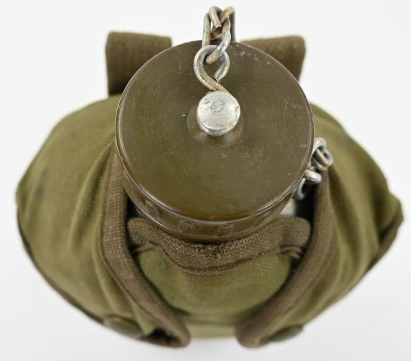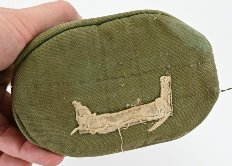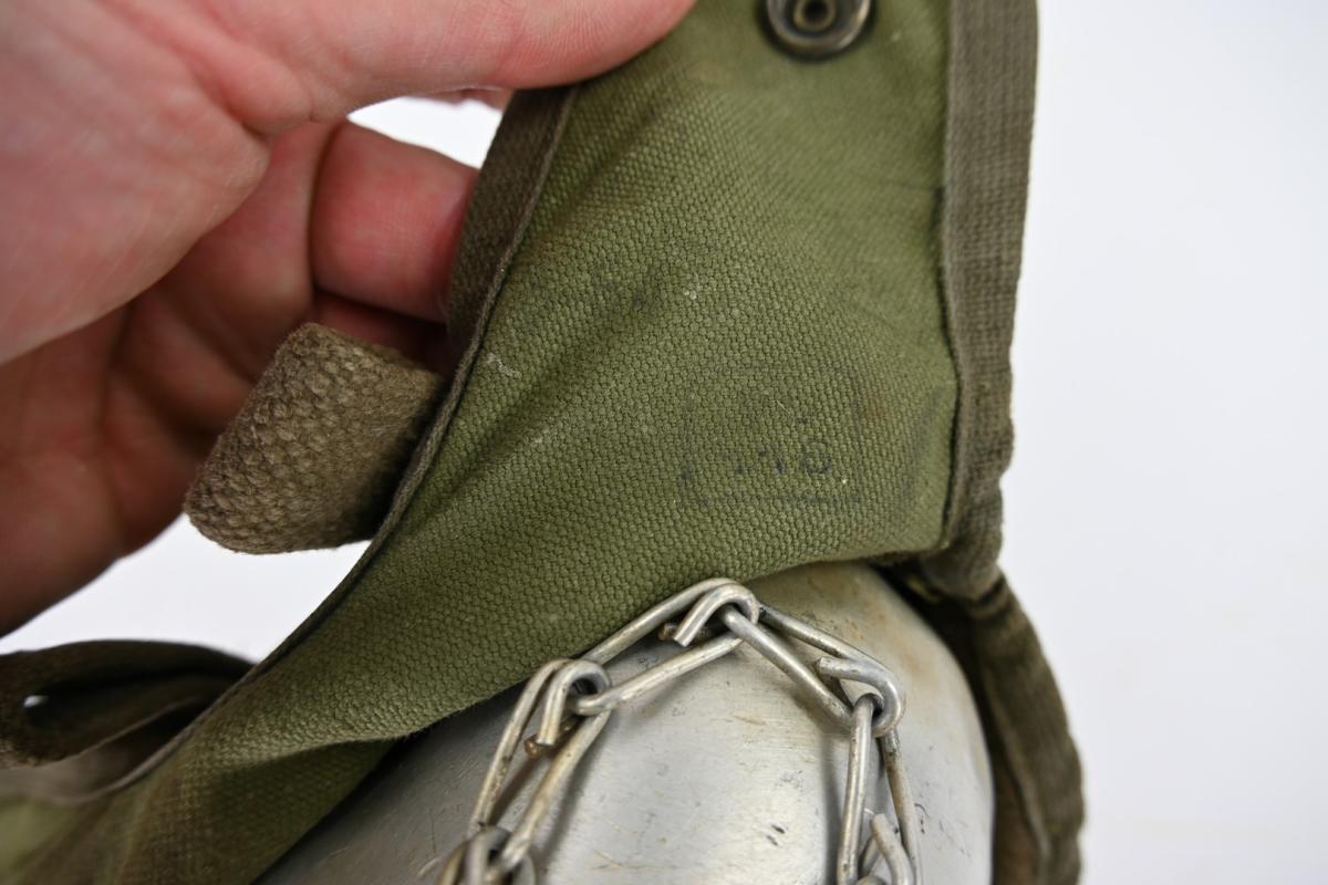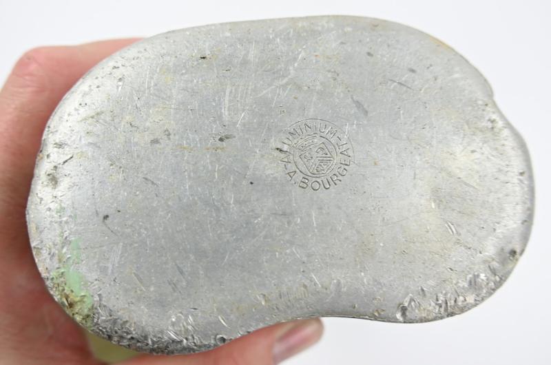 In a nice used conditon a French Indochina period drinking canteen with cup and cover. The set is maker marked and complete.
