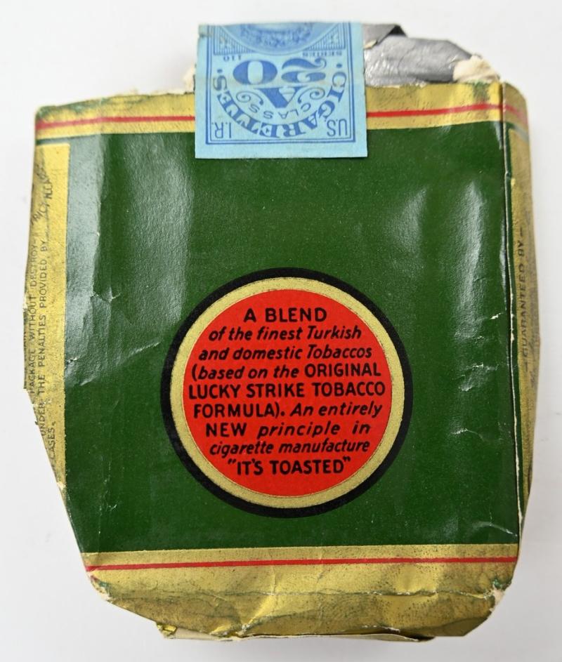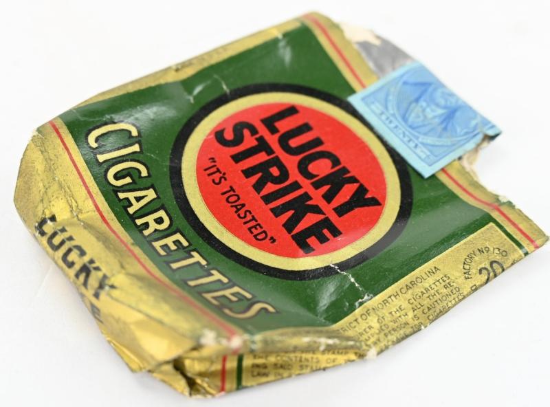 In a used condition a US WW2 Green Package of Lucky Strike Cigarets.