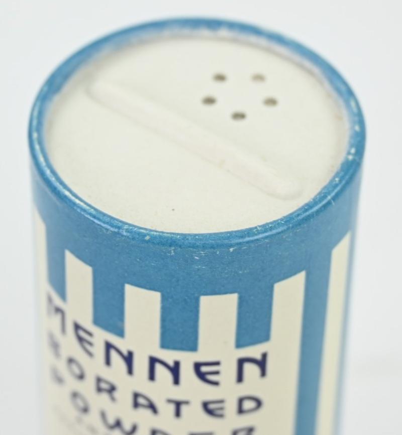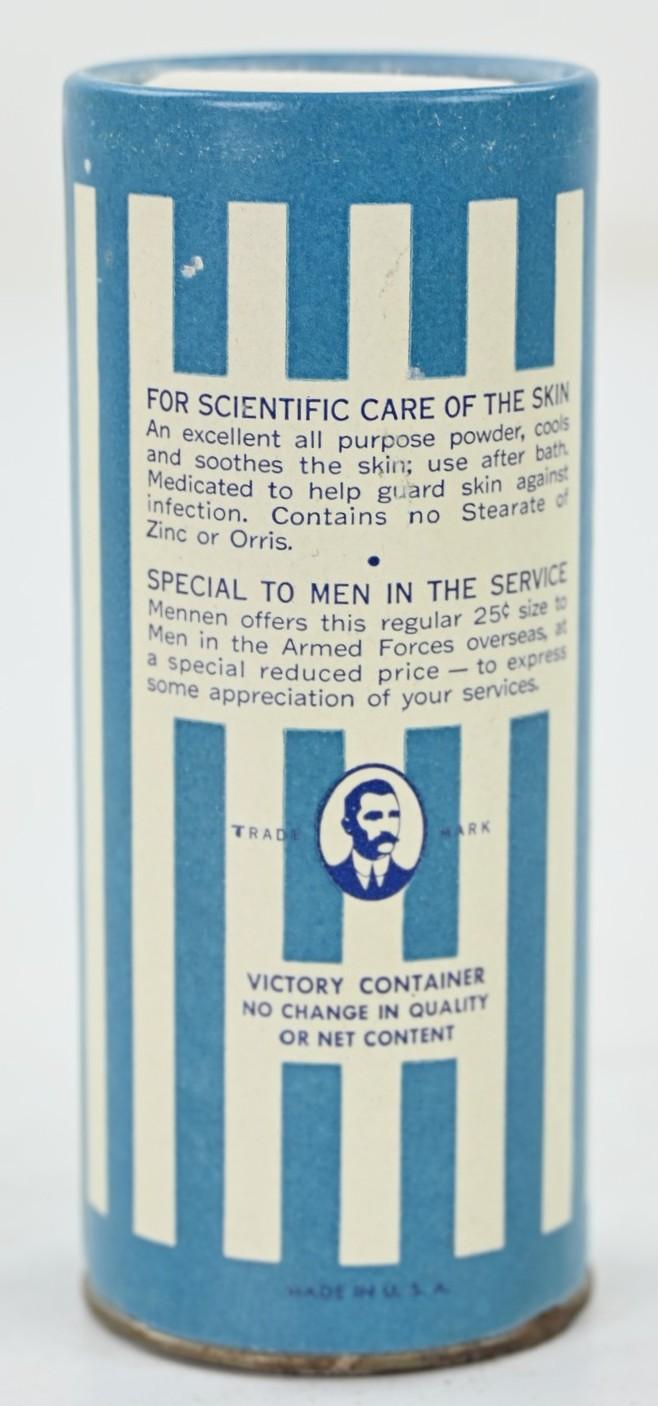 In a very good condition a US WW2 Era Bottle of Borated Powder 'Mennen'. The bottle is made from carton and comes with the original content still inside.