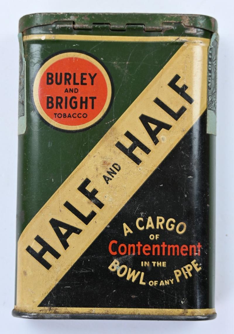 In a very nice condition a US WW2 Period Half & Half Tabacco Tin Can. the tin can comes without content inside. Nice display item.
